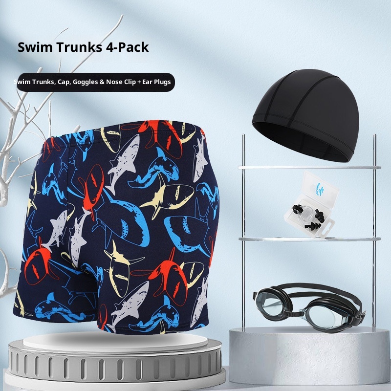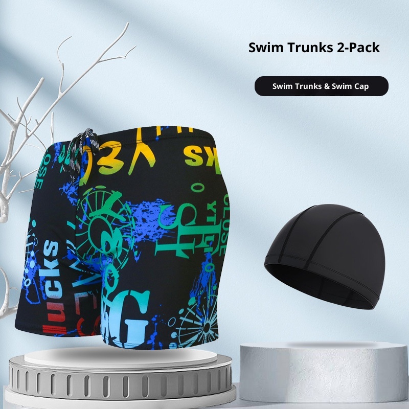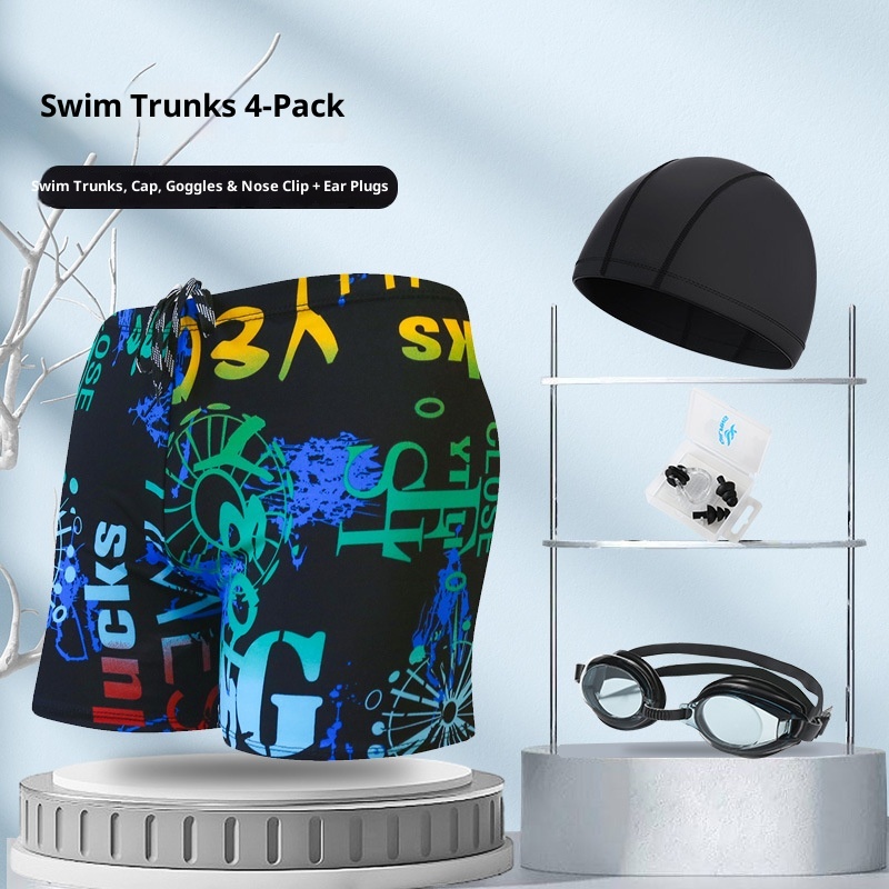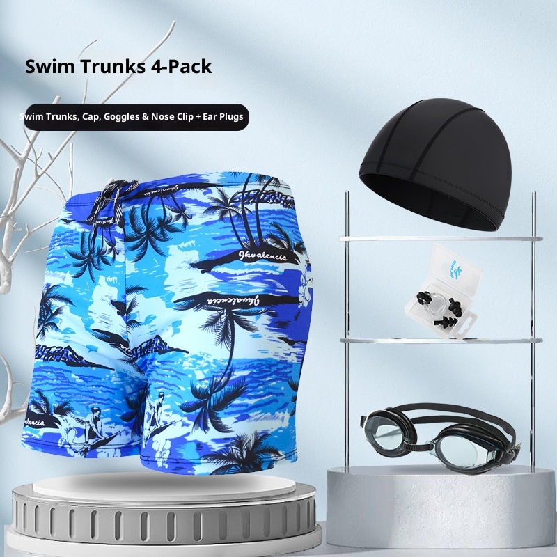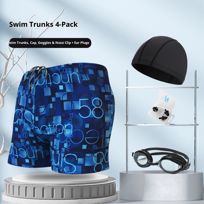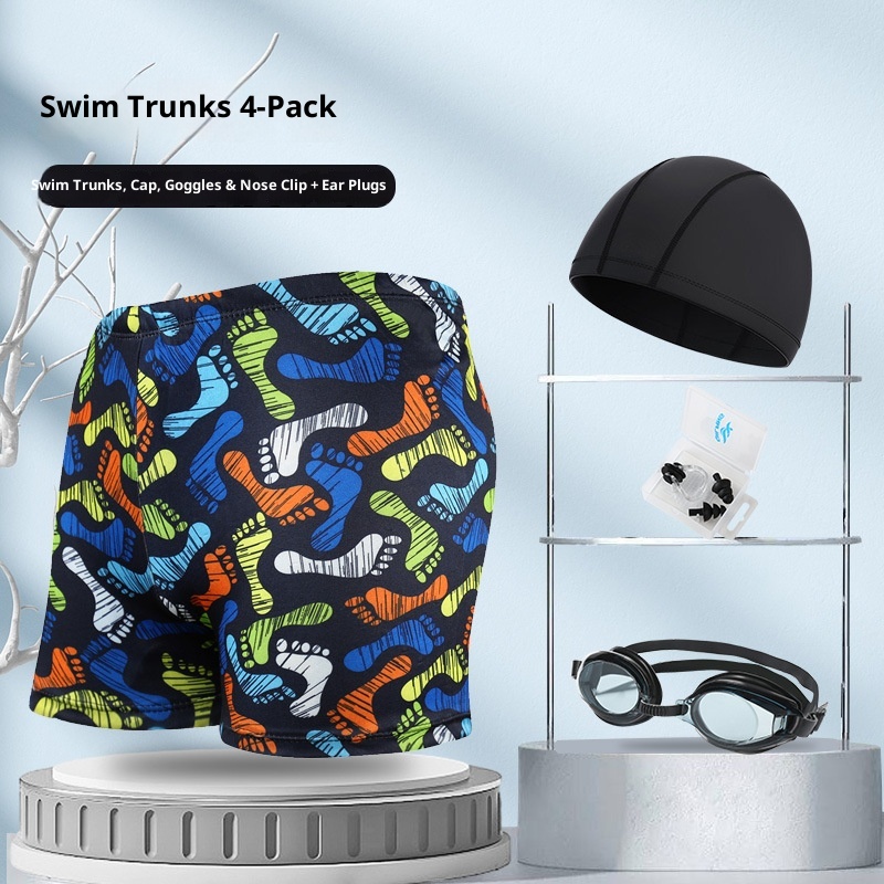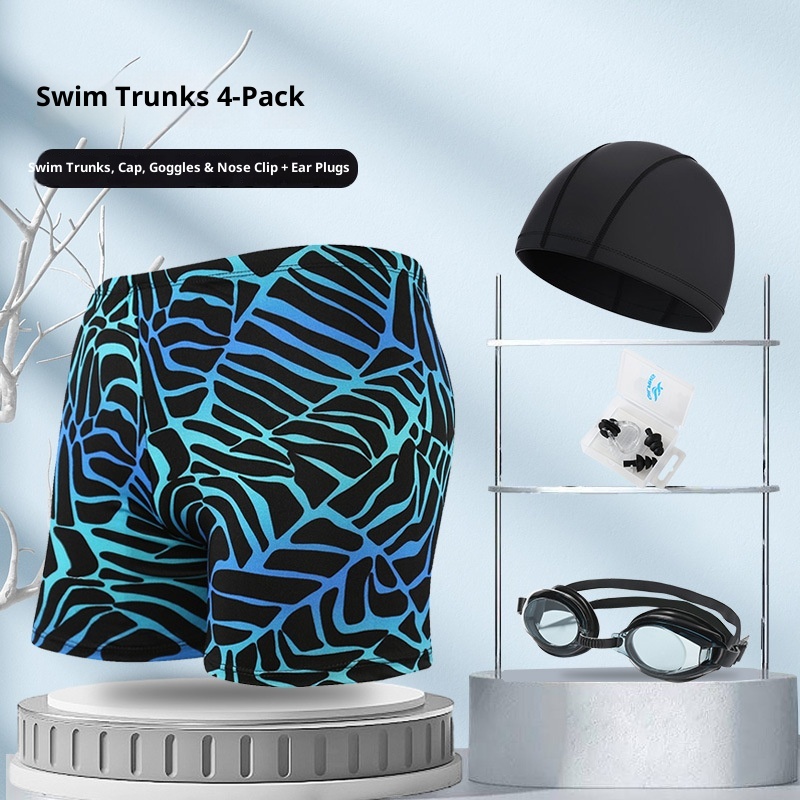 001 Hot-Selling Trunks For Adults, Men's Plus Size Anti-Embarrassment Boxer Shorts, Printed Beach And Hot Spring Swimming