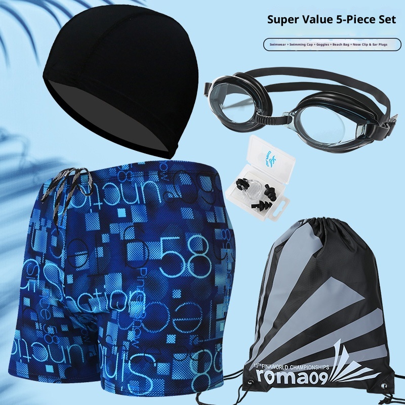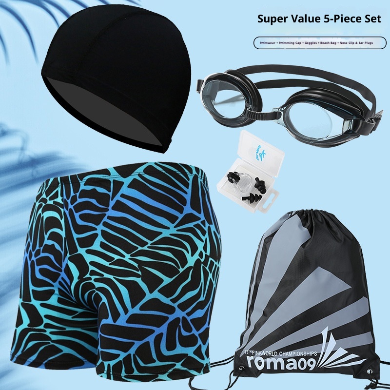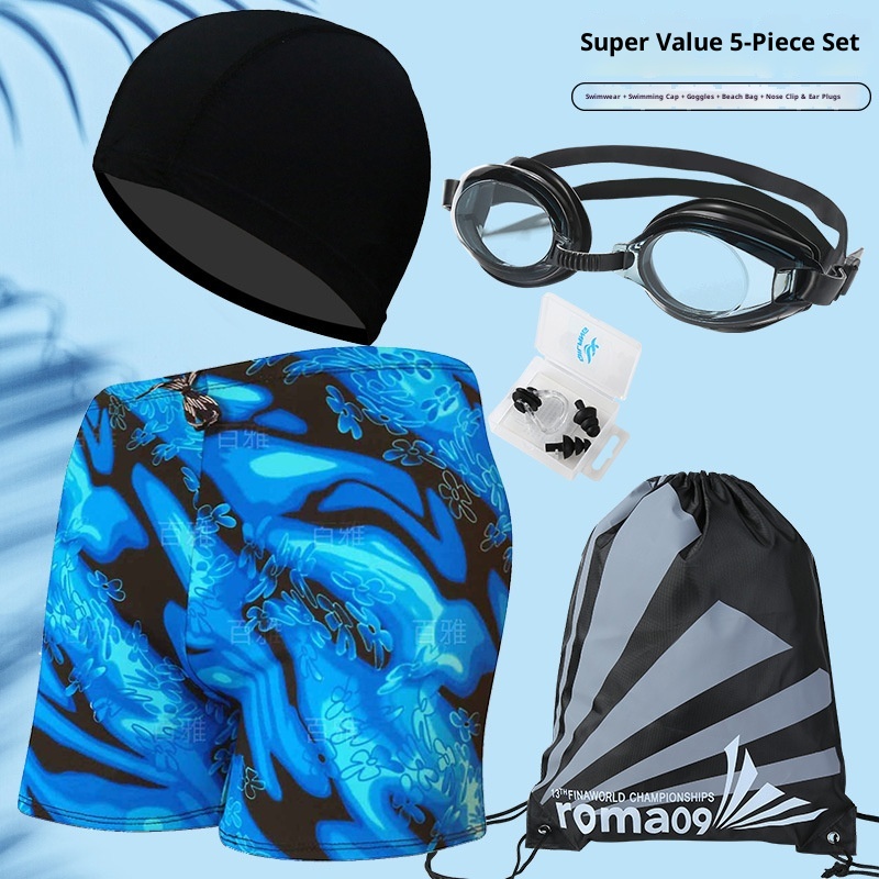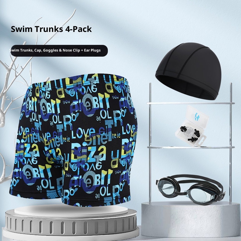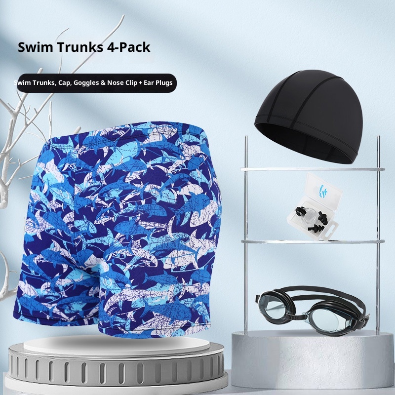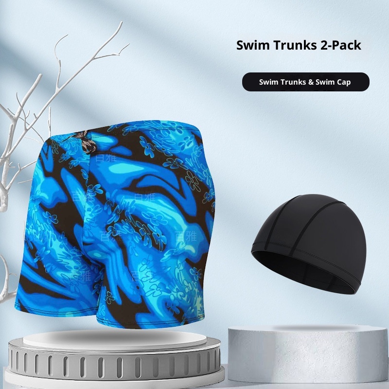 001 Hot-Selling Trunks For Adults, Men's Plus Size Anti-Embarrassment Boxer Shorts, Printed Beach And Hot Spring Swimming