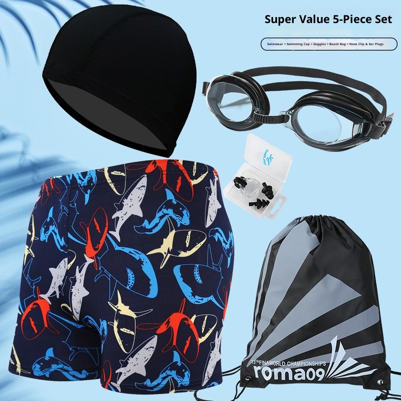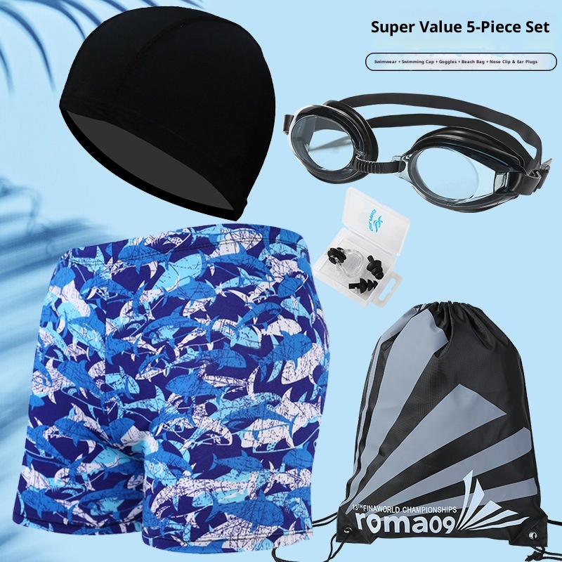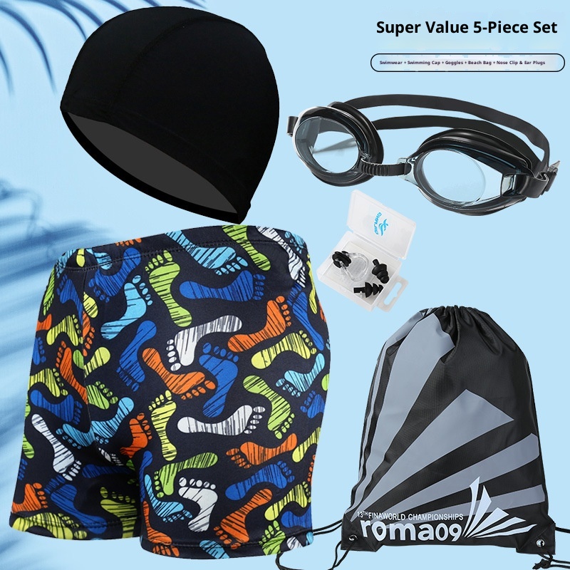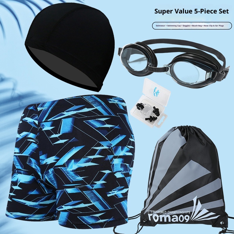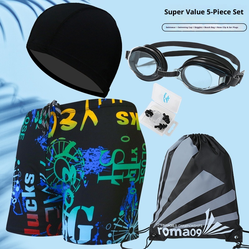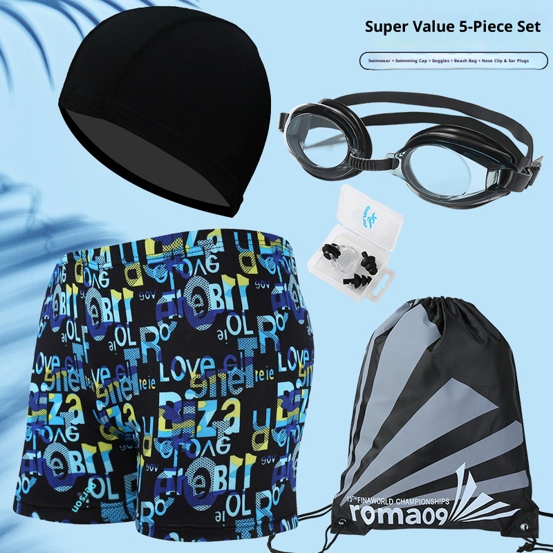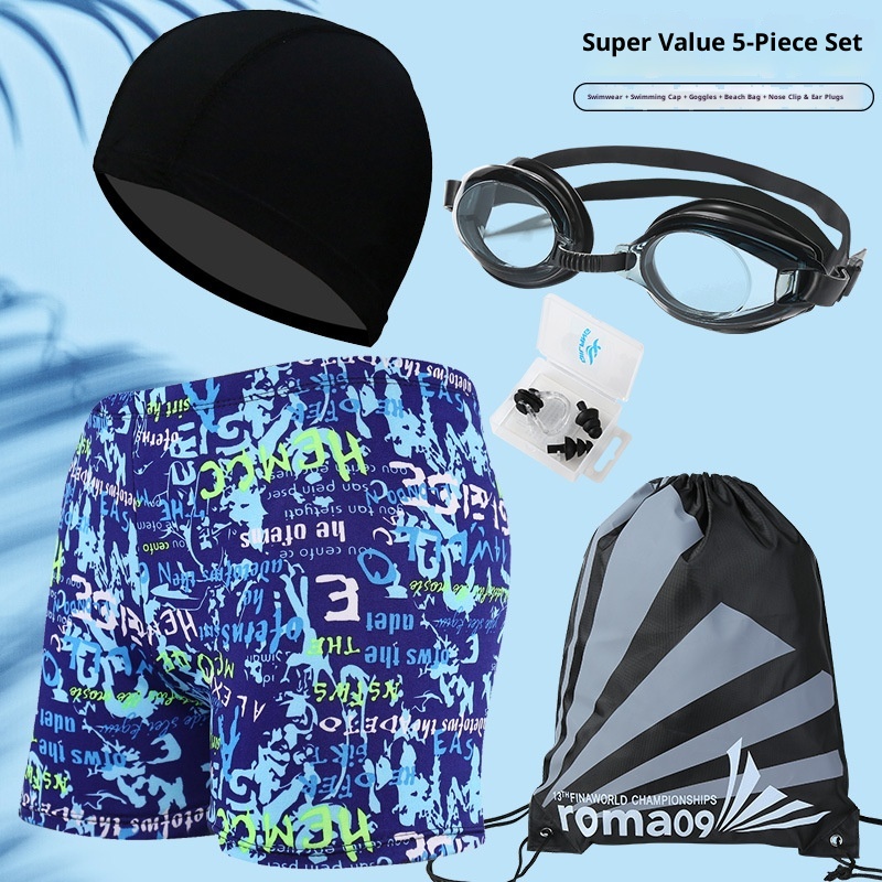 001 Hot-Selling Trunks For Adults, Men's Plus Size Anti-Embarrassment Boxer Shorts, Printed Beach And Hot Spring Swimming