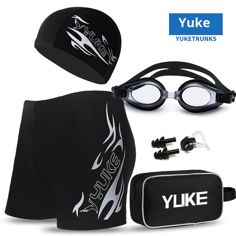 001 Yuke Men's Hot Spring Boxer Shorts Comfortable Plus Size Adult Quick-Dry Slim Fit Trunks Goggles Swimming Cap Set