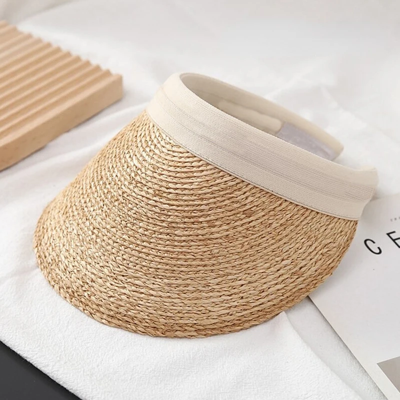 2023 Real Raffia Panama Straw Empty Top Unisex Summer Hat Sun Protection Outdoor Idyllic Style Vacation Beach Cap