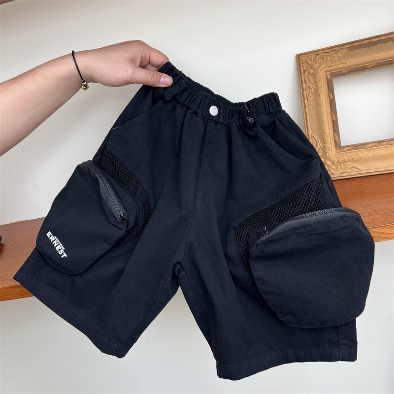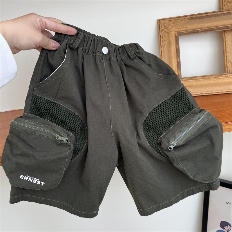 2024 Drenge Sommer Amerikanske Arbejdsshorts med Store Lommer til Børns Fritid Løse Vandvaskede Bomuldsbukser Over Knæ 5/4