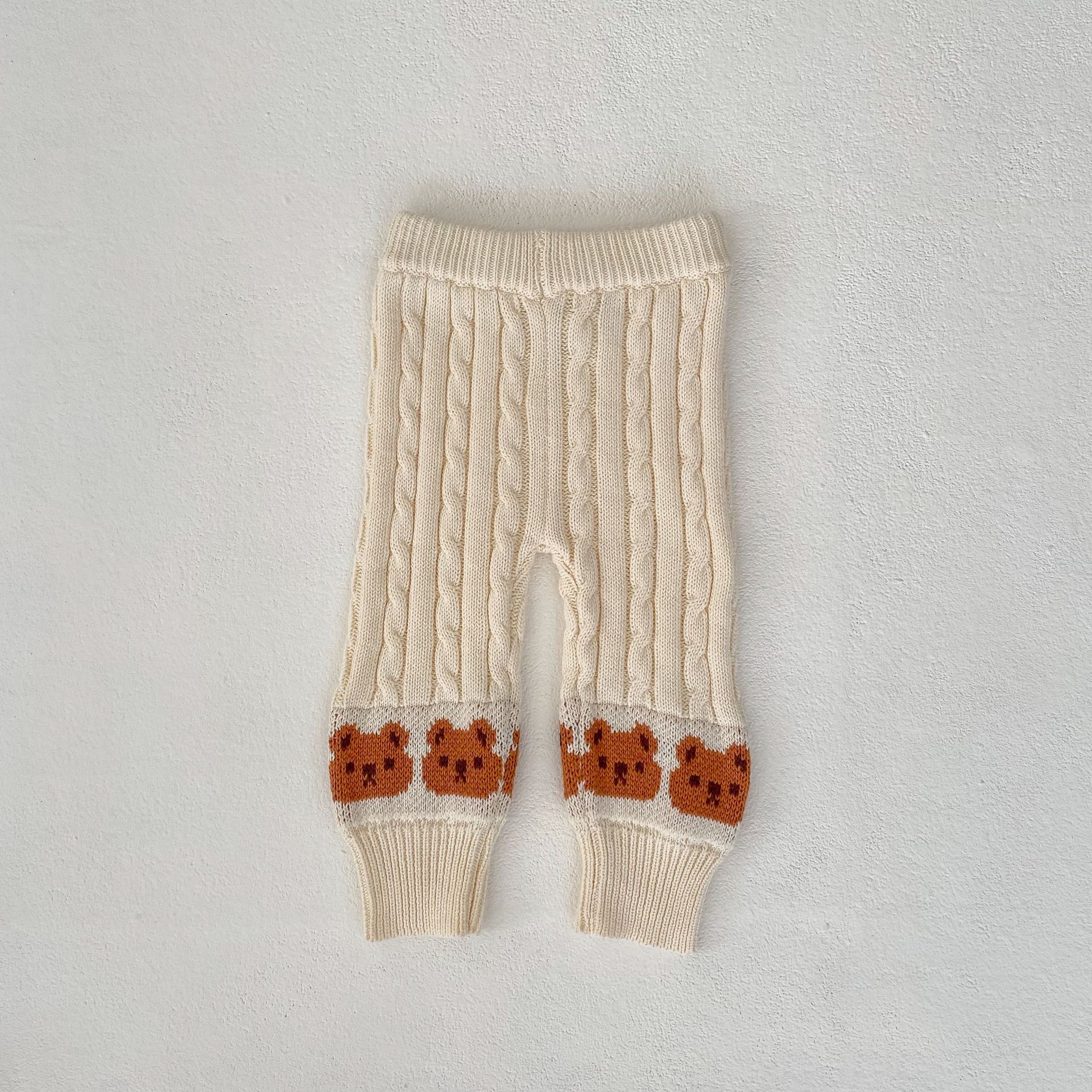 2024 Efterårssæt med striber til spædbørn og lille hættetrøje + lille bjørn i jacquardstrik og bukser (2 dele)