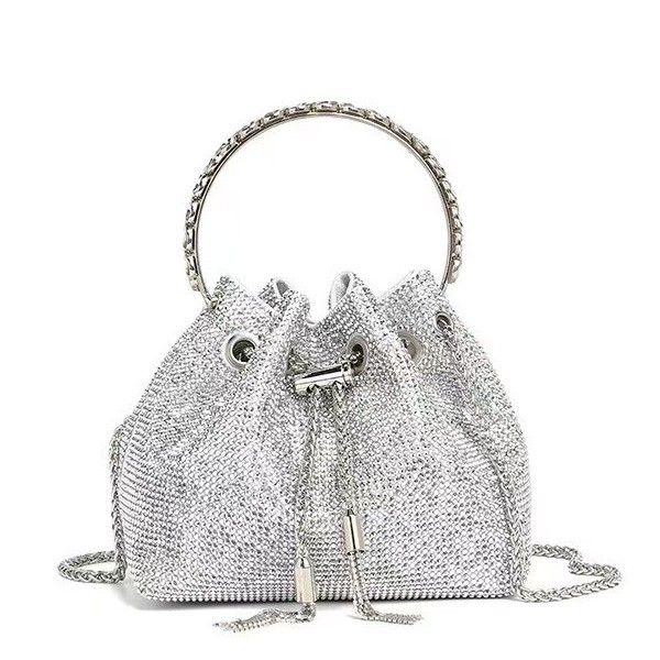 2024 Soft Rhinestone Bag for Women Evening Bag High-end Tassel Bag Handbag Full Diamond Textured Handheld Bucket Bag