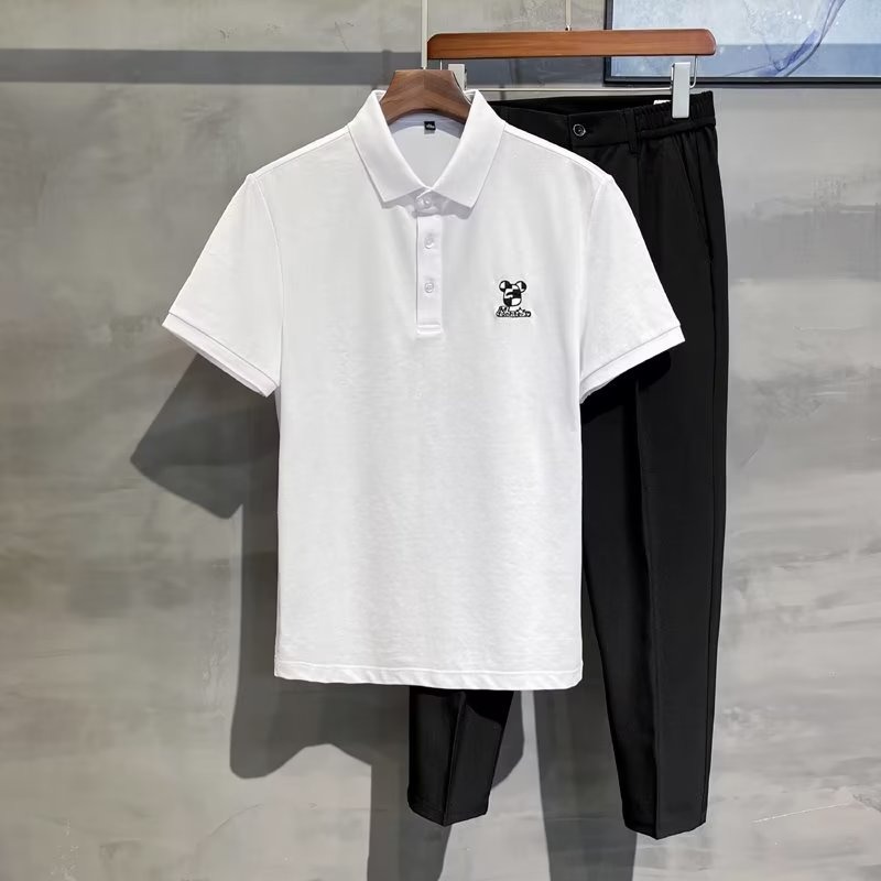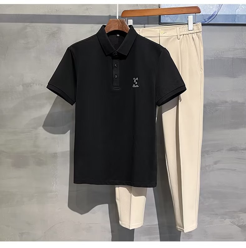 2024 Summer Thin Pearl Mesh Bear Embroidered Back Letter Print Slim Fit Elastic Polo Short Sleeves