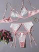 Pink Mesh See-through Three-point Hollow Out with Stockings Hidden Button Sexy Lingerie