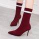 608-4 Efterår Vinter Spidse Bare Og Slanke Elastiske Hæle Strikkede Sokker Støvler, Tynde Hæle, Korte Støvler