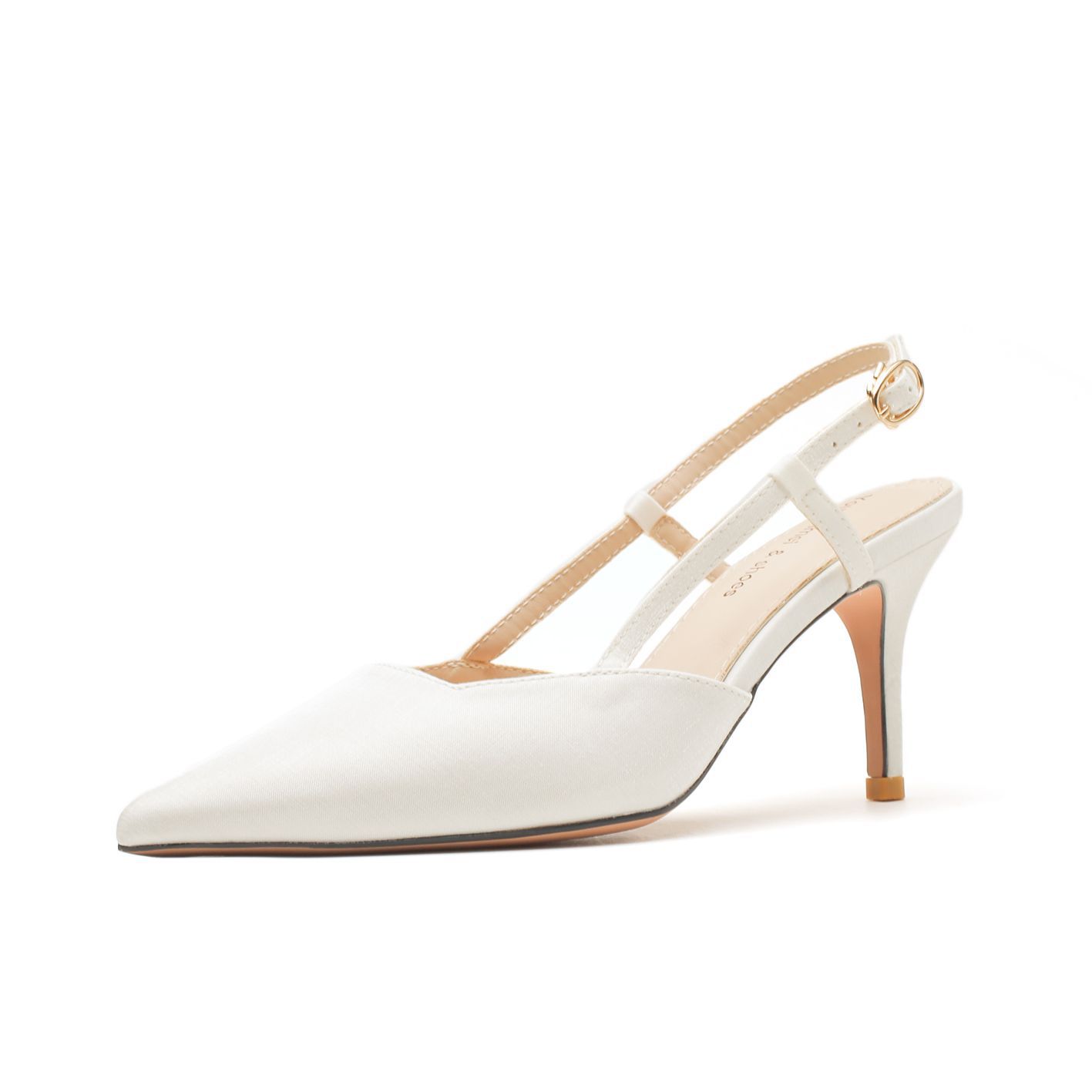 7755C Satin Front Closure Back Open Strap Sandals Thin Heel High Heels Professional Shoes Commuting Elegant Versatile
