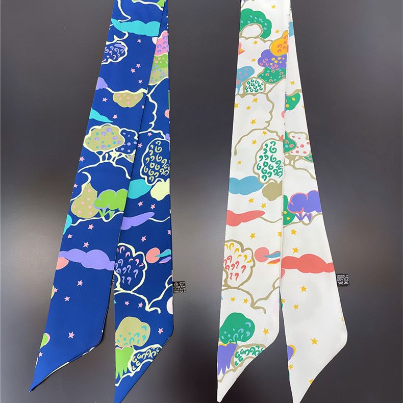 Silk Scarf, Ancient Style, Auspicious Cloud, Long Strip Silk Scarf, Scarf, Ribbon, Belt, Versatile Binding Bag, Small Silk Scarf for Women