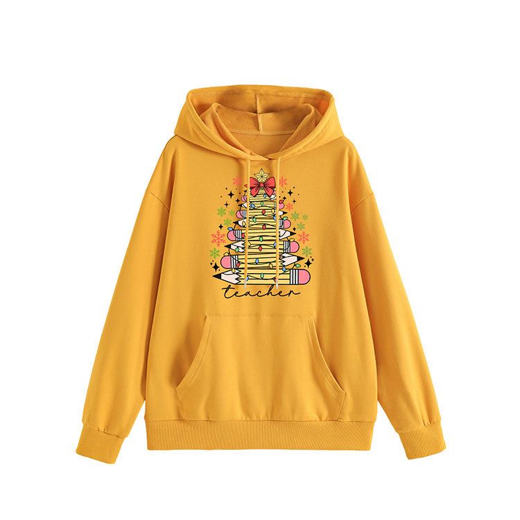 Autumn And Winter Loose Plus Size Fashion Teacher Pencil Light Bulb Women's Hooded Sweatshirt