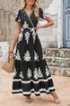 Women's V-neck flared sleeve floral print pocket short sleeved dress