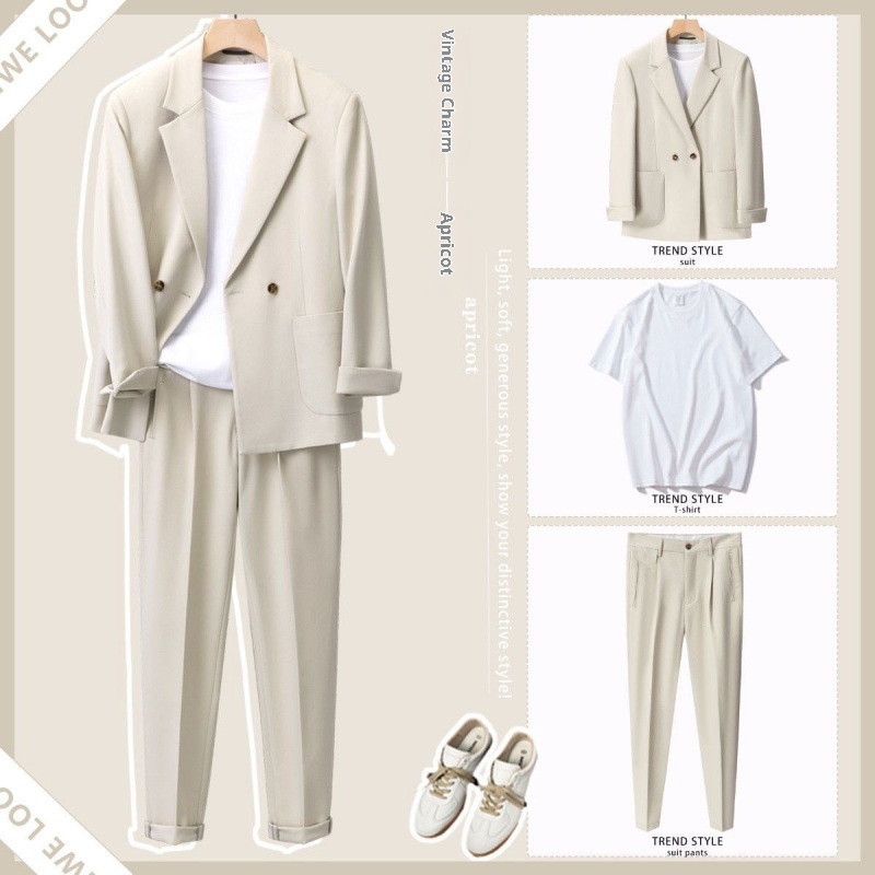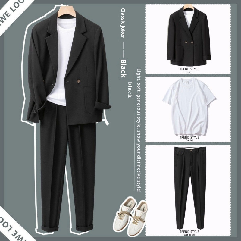 boy Spring And Autumn New Loose Fit Draped Set For Men Korean Trendy Handsome Casual Mature Style Men's Three-Piece Suit