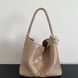 Champagne Color Woven Pattern Tote For Women, Large Capacity, Handheld And Shoulder Bucket Bag