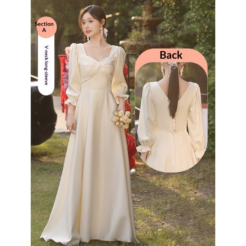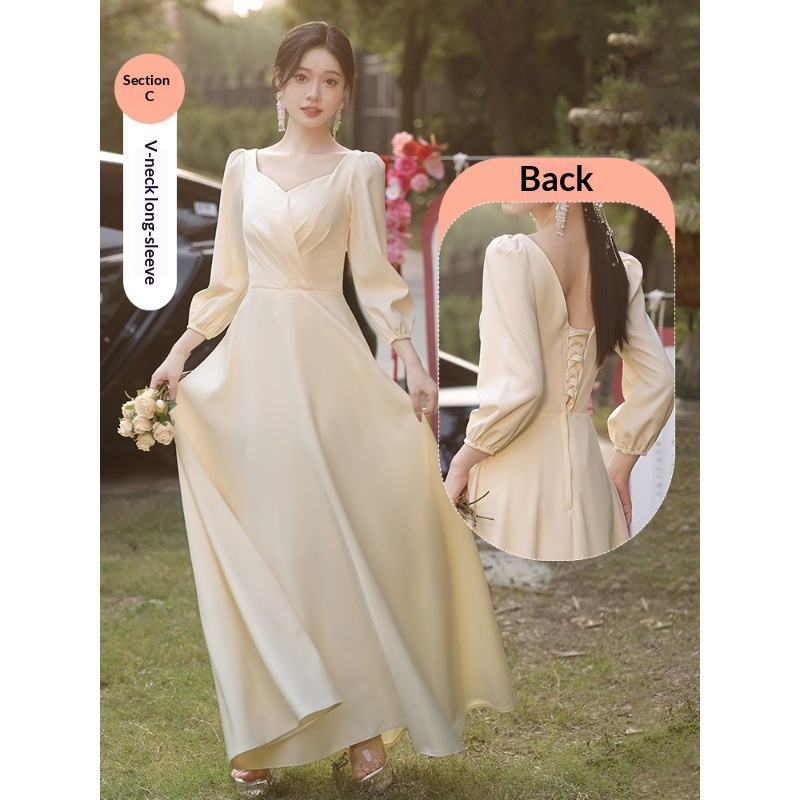 ChicShe ChicShe Champagne Bridesmaid 2025 New Spring Long Sleeve High-end Niche Wedding Sister Group Dress Suitable For Casual Wear
