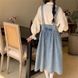 ChicShe Two-Piece Set Denim Vintage Strap Dress Women's Outfit 2024 Spring New Style + Doll Collar Lace Blouse Versatile