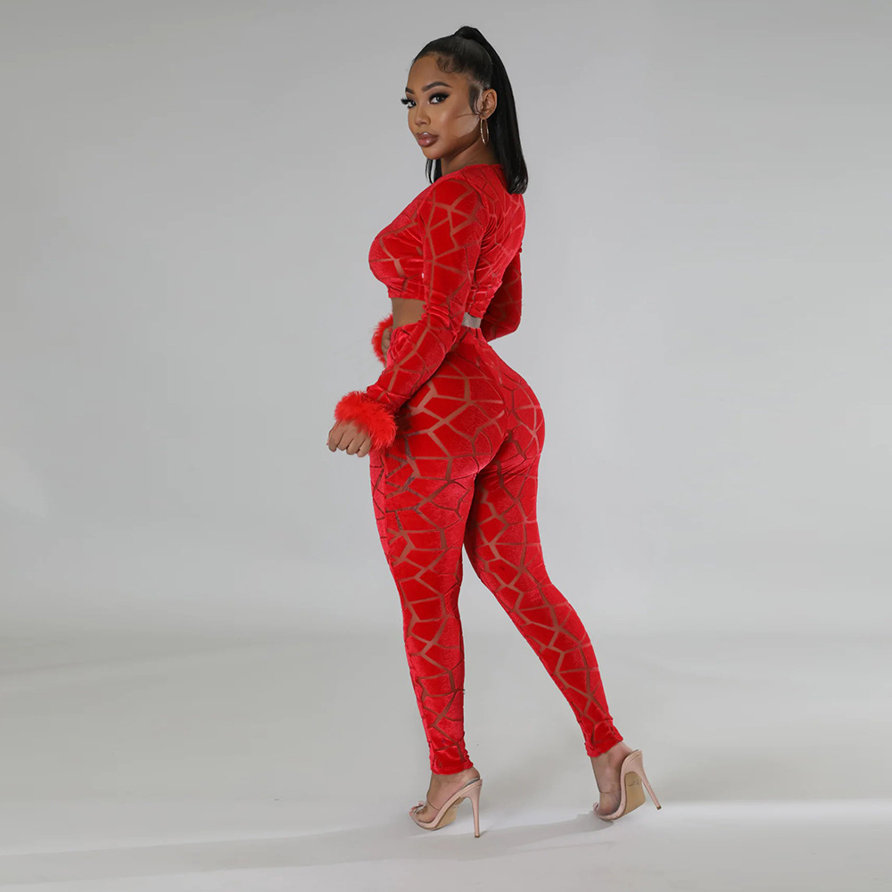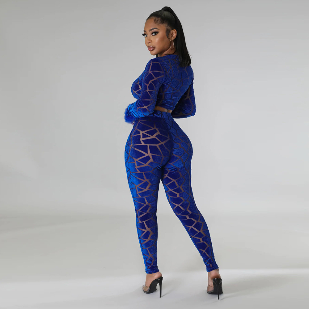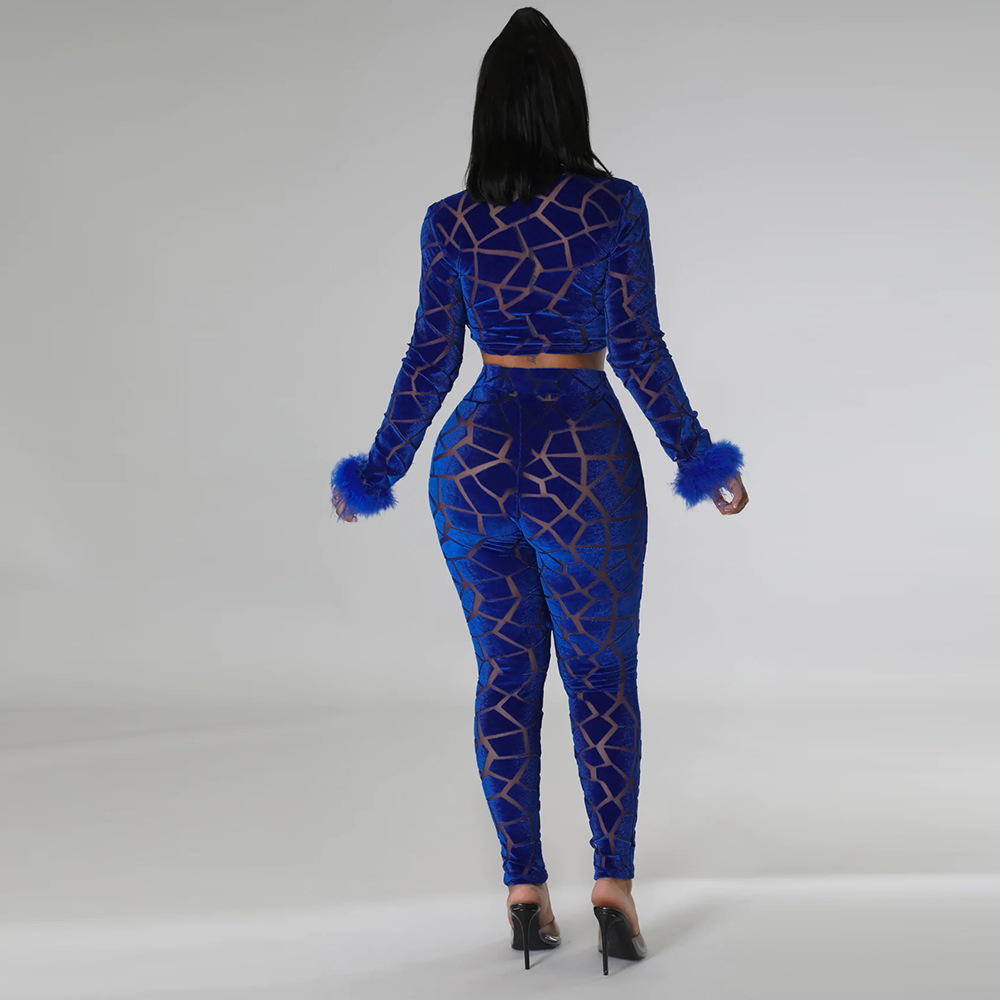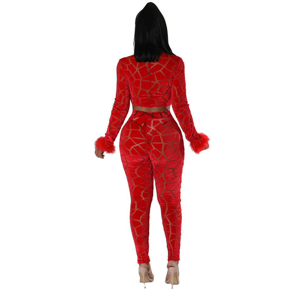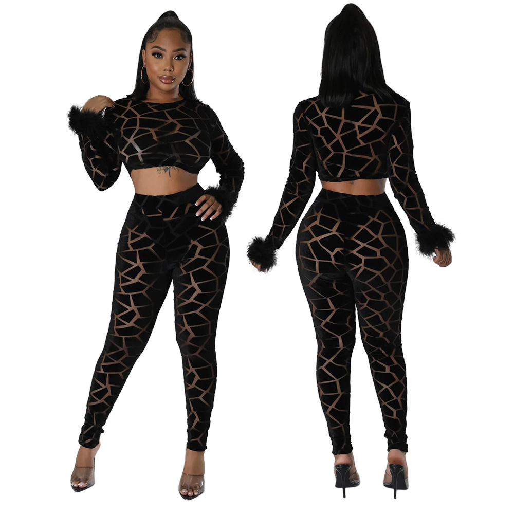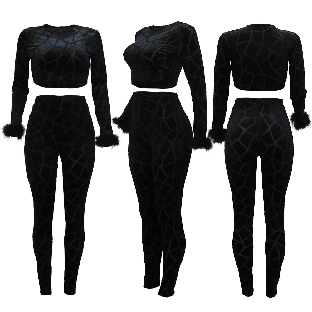Dametøj langærmet kort top med slanke blyantbukser moderigtigt todelt sæt