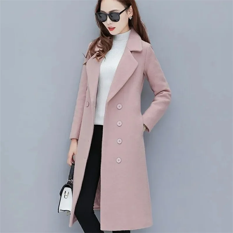 Female Woolen Coat Veet 2023Women's Double-Breasted Woolen Coat Spring And Autumn Woolen Coat Fashion Suit Collar ThickTrench