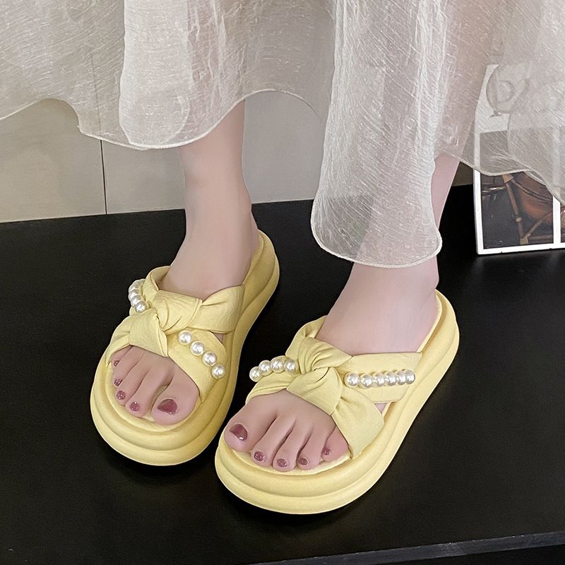 French Style Nicole Outdoor Non-slip Thick Bottom Women's Slippers 2025 Summer New Fashion Pearls Casual Sandals