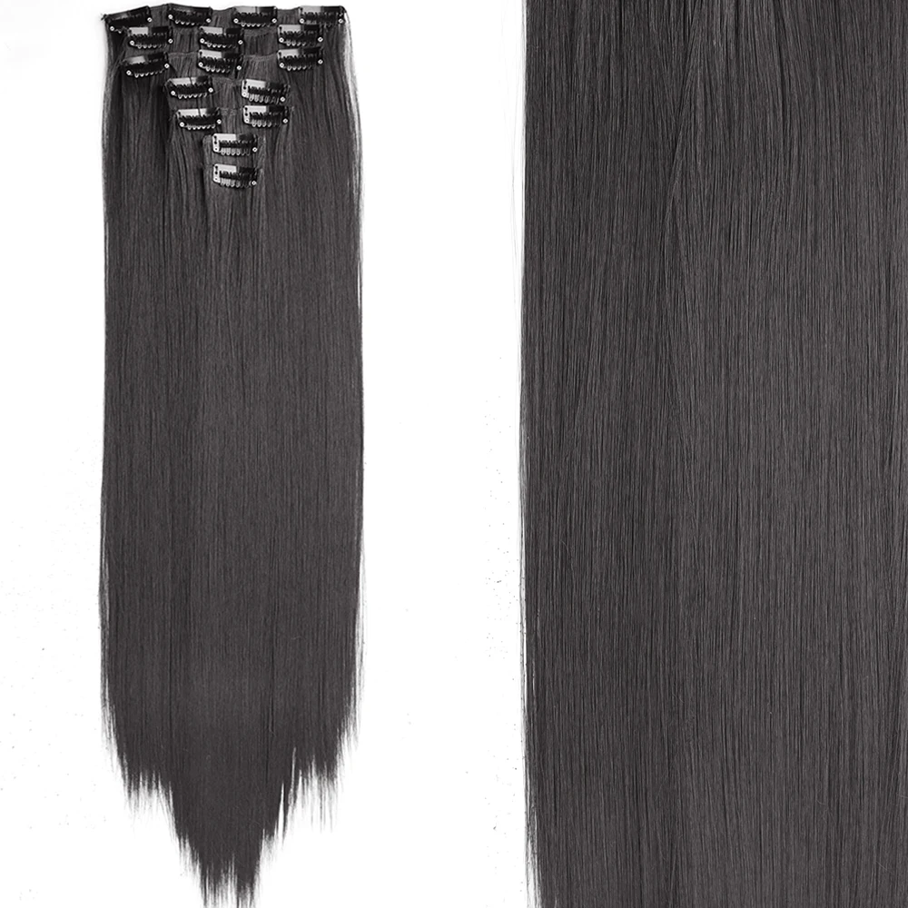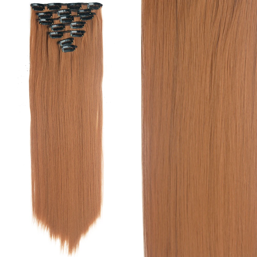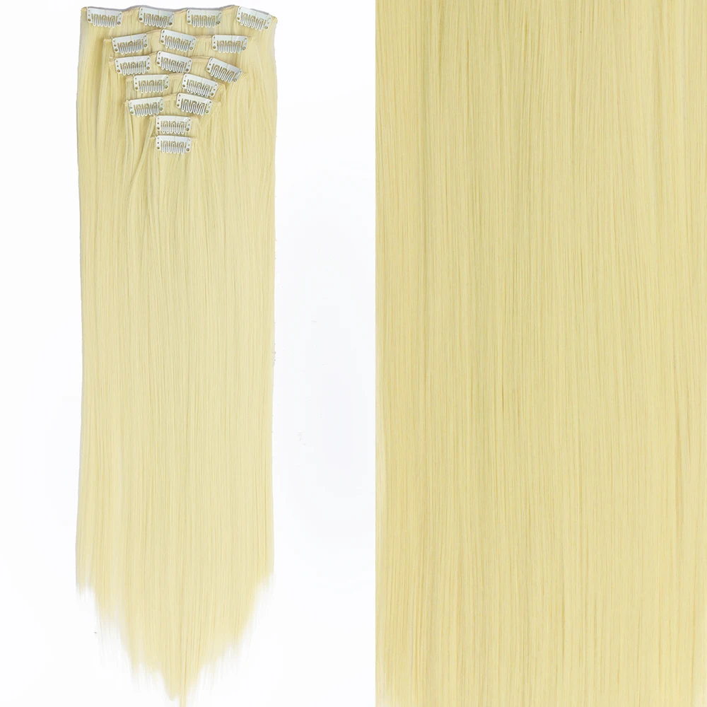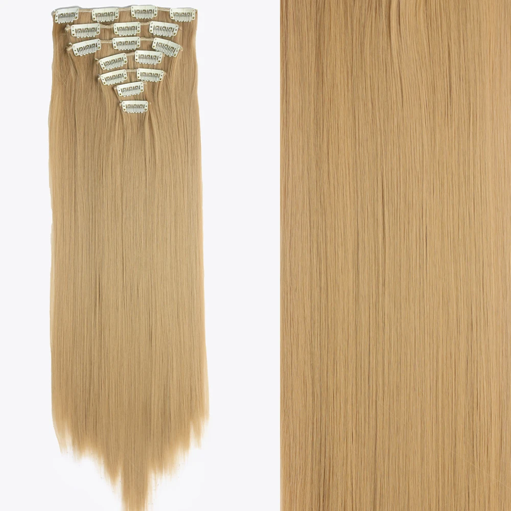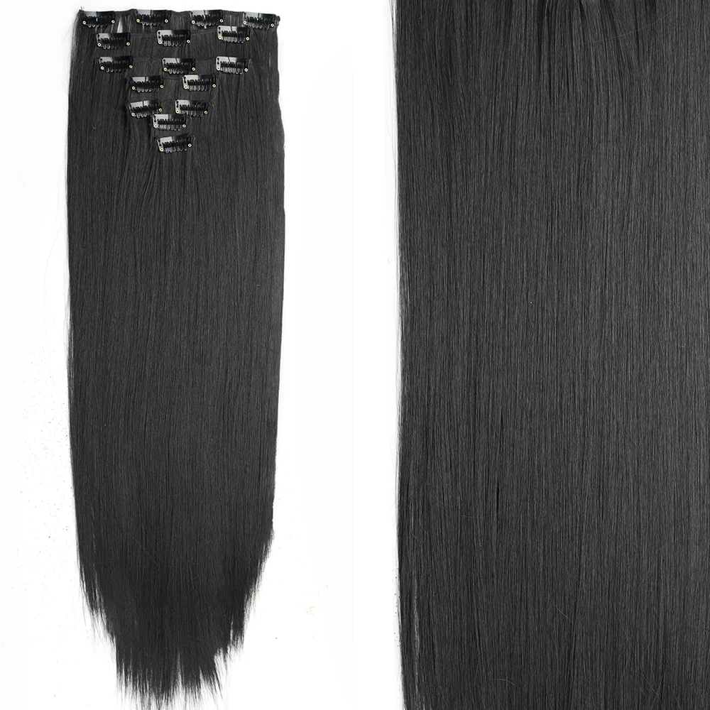 Lang, lige frisure 16 klips 7 stk./sæt hårextensions naturlige syntetiske blonde sorte hårstykker varmebestandige til kvinder