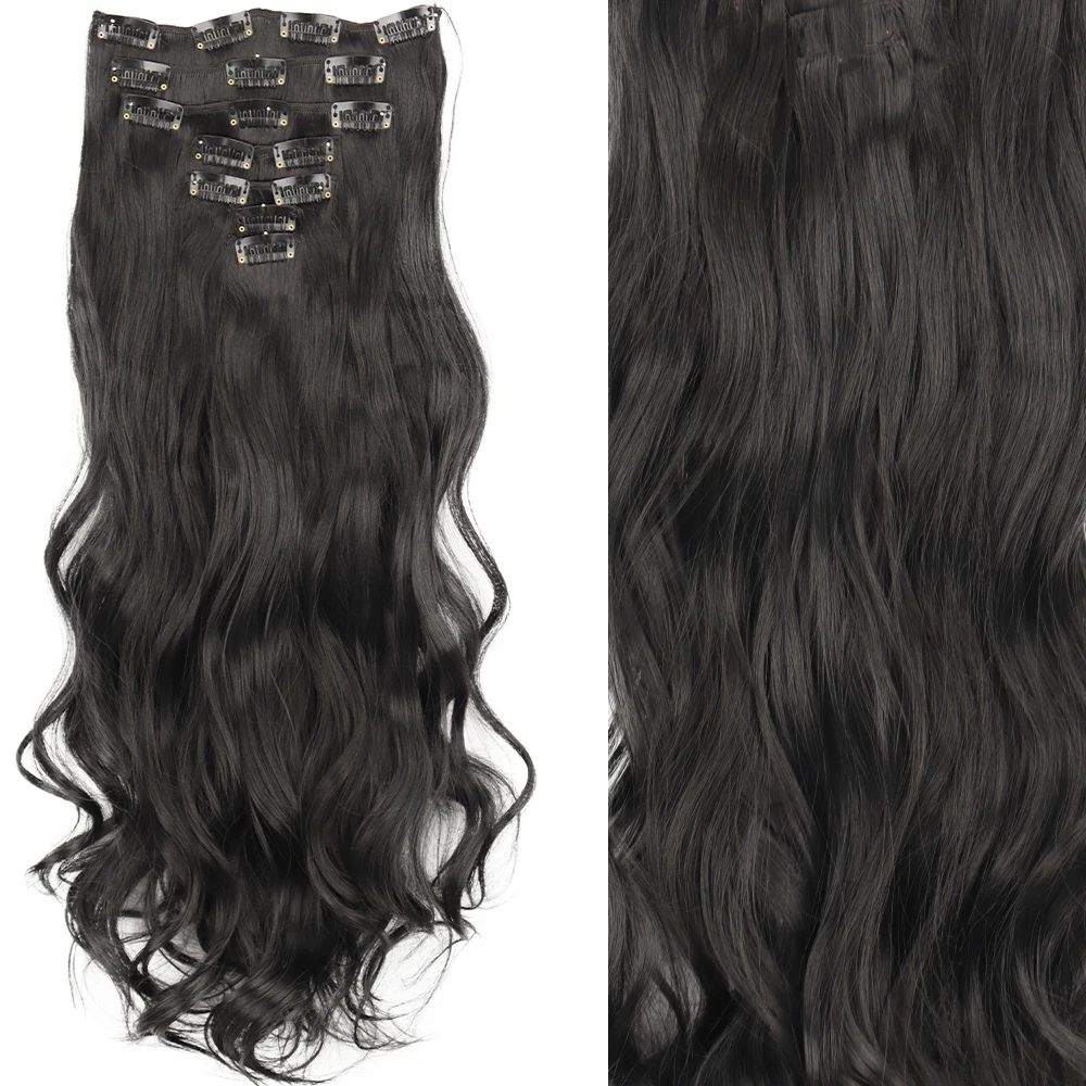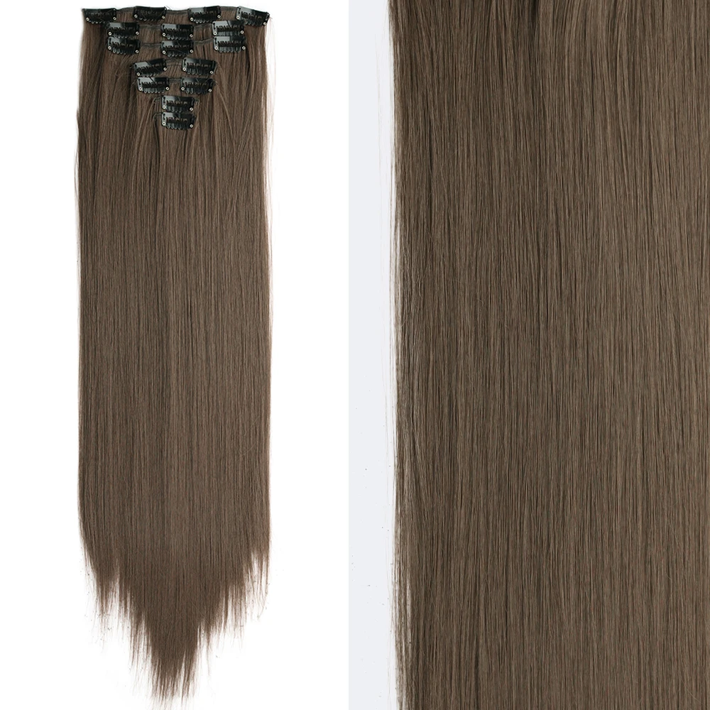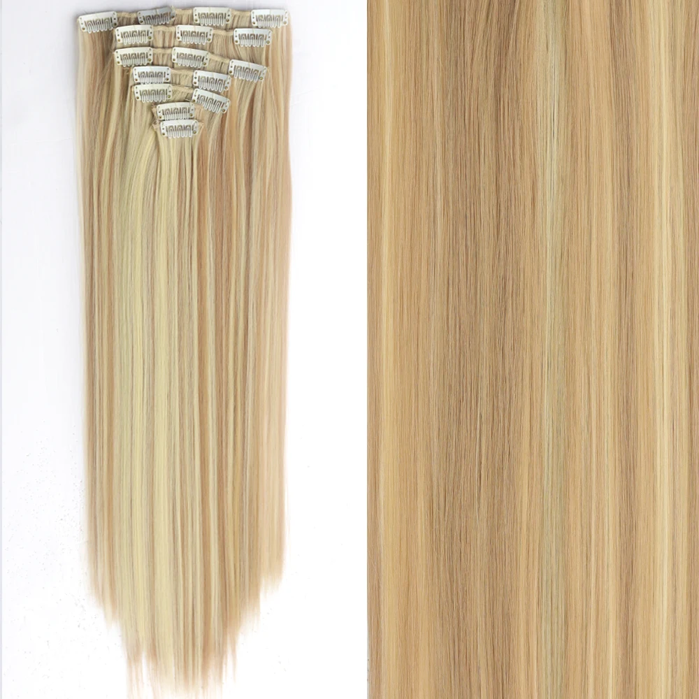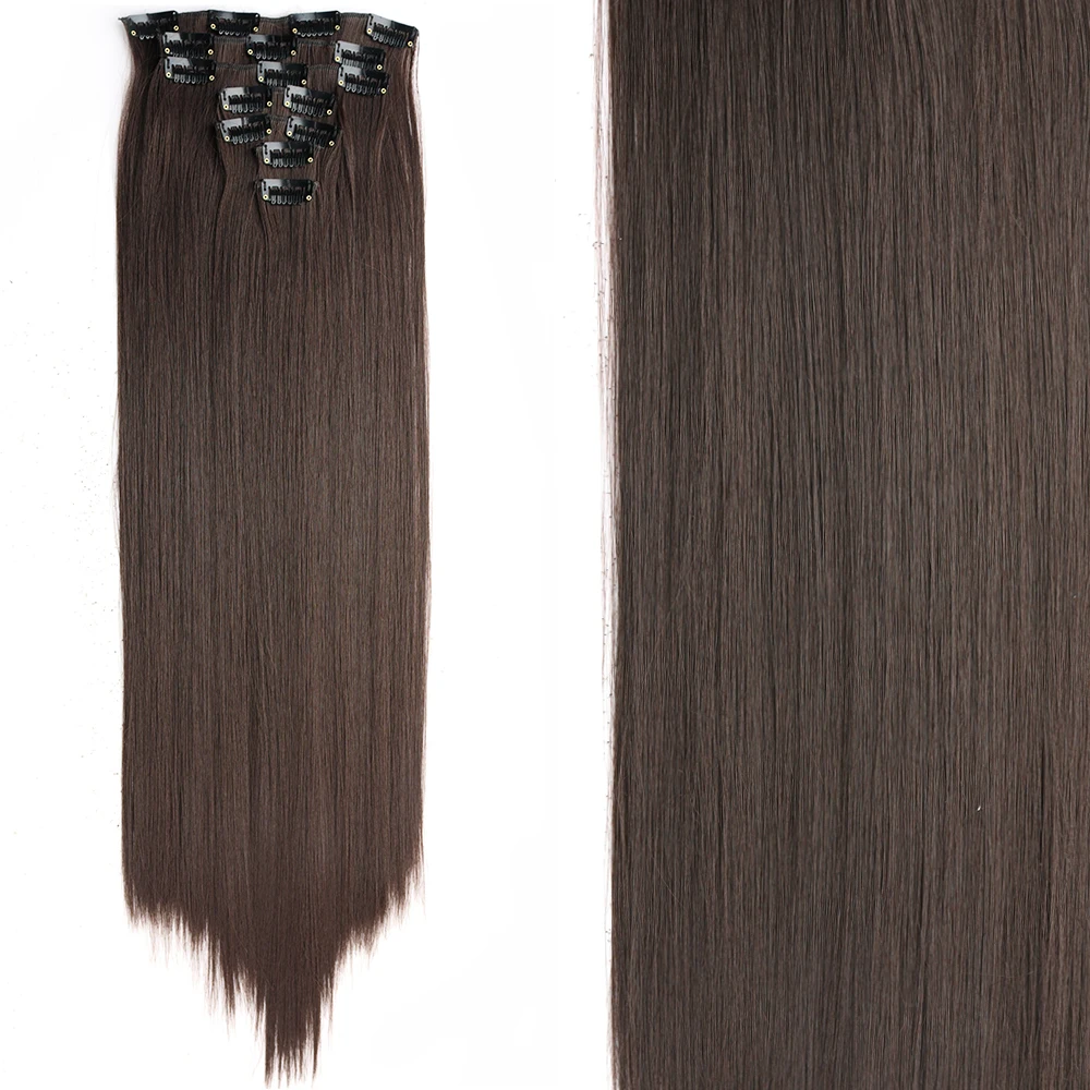 Lang, lige frisure 16 klips 7 stk./sæt hårextensions naturlige syntetiske blonde sorte hårstykker varmebestandige til kvinder
