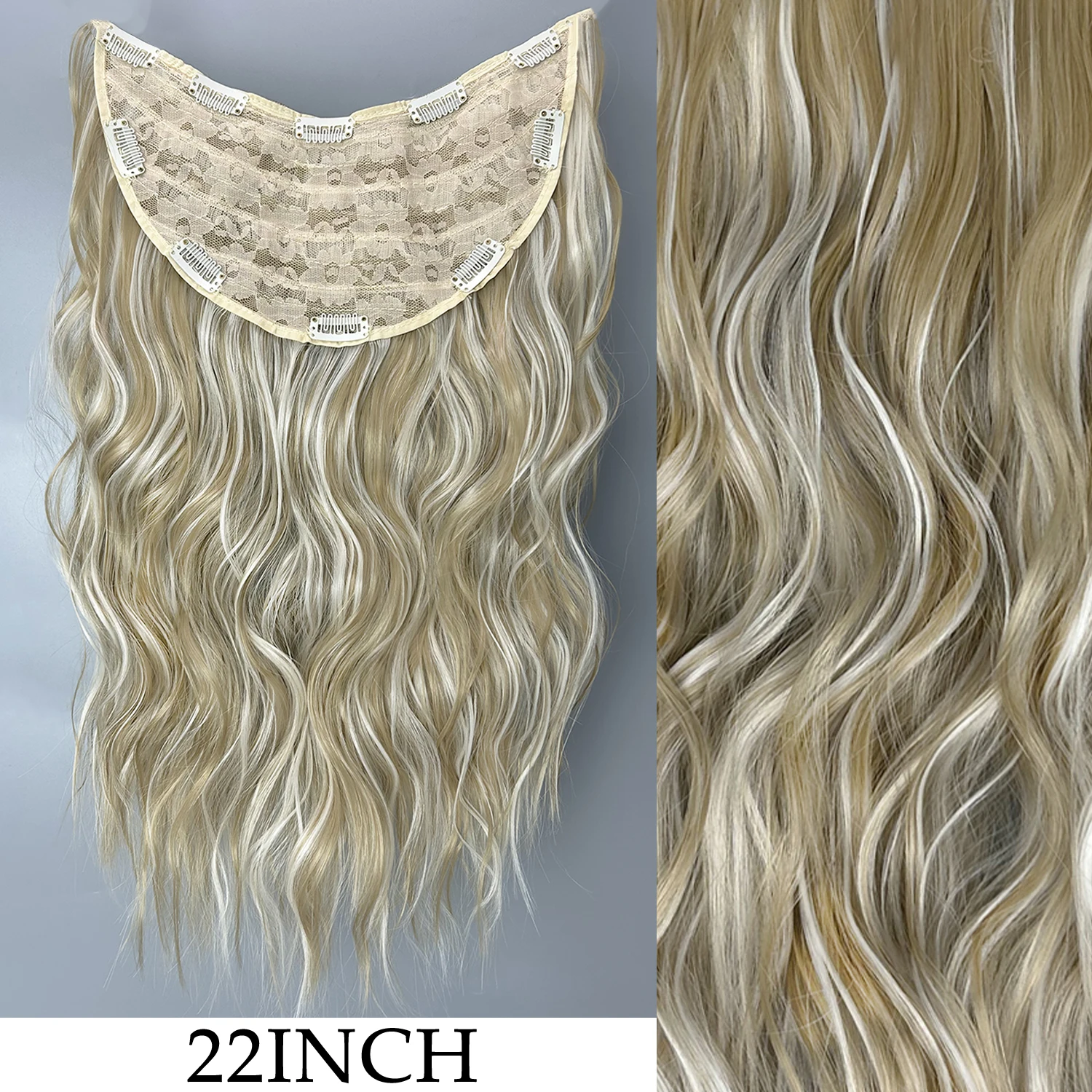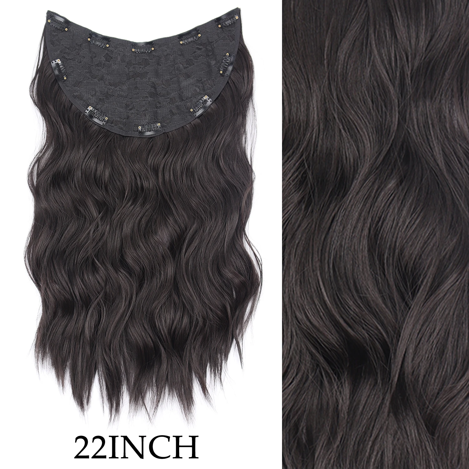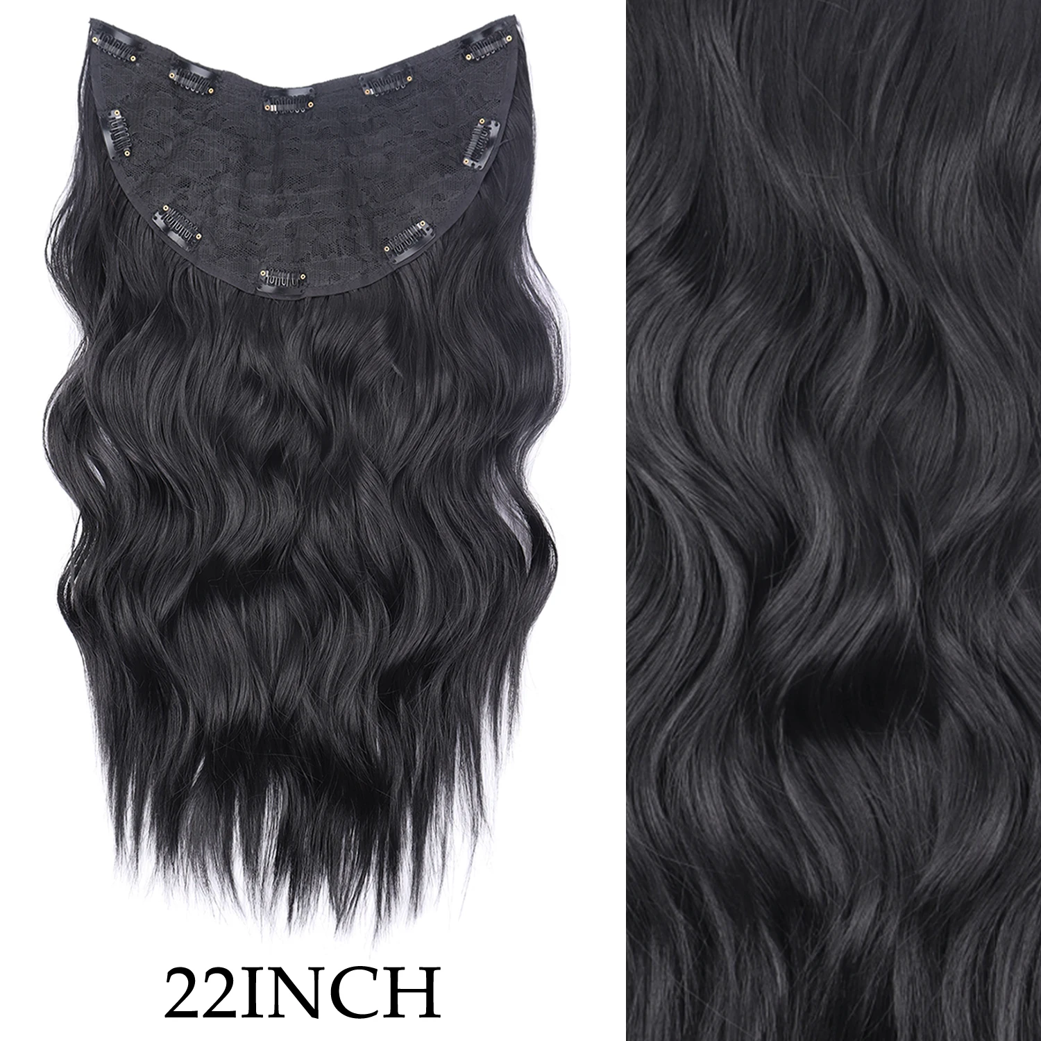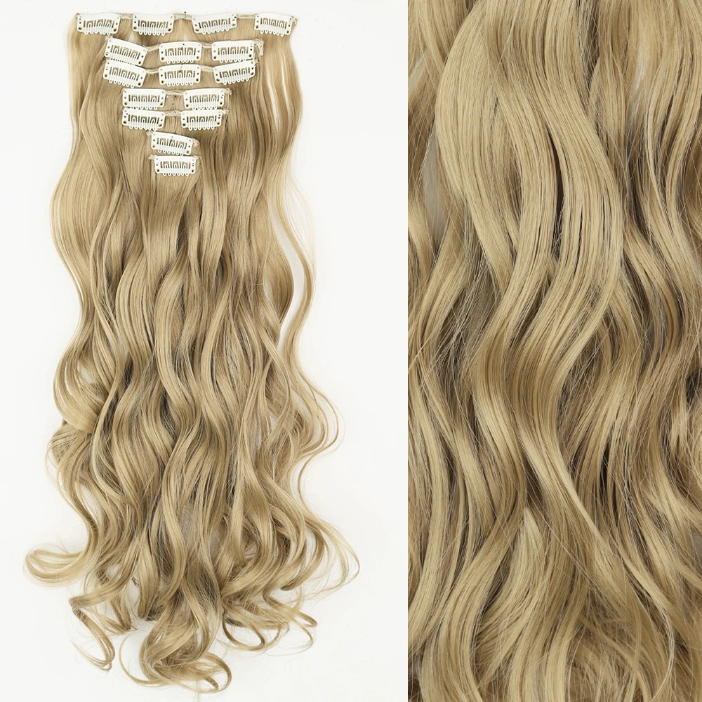 Lang, lige frisure 16 klips 7 stk./sæt hårextensions naturlige syntetiske blonde sorte hårstykker varmebestandige til kvinder