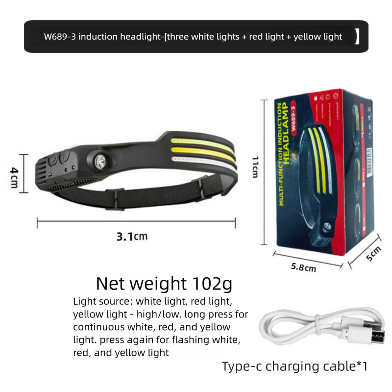 Rechargeable Headlamp For Fishing Super Bright Long-Lasting Motion Sensor Headlight Outdoor Night Fishing Head Torch