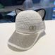 【 Quick Refund 】 Hat Girl Cute Rabbit Ear Water Diamond Hollow Duck Tongue Hat Summer Breathable Mesh Knitted Fashion Sunshade Parent Child Hat