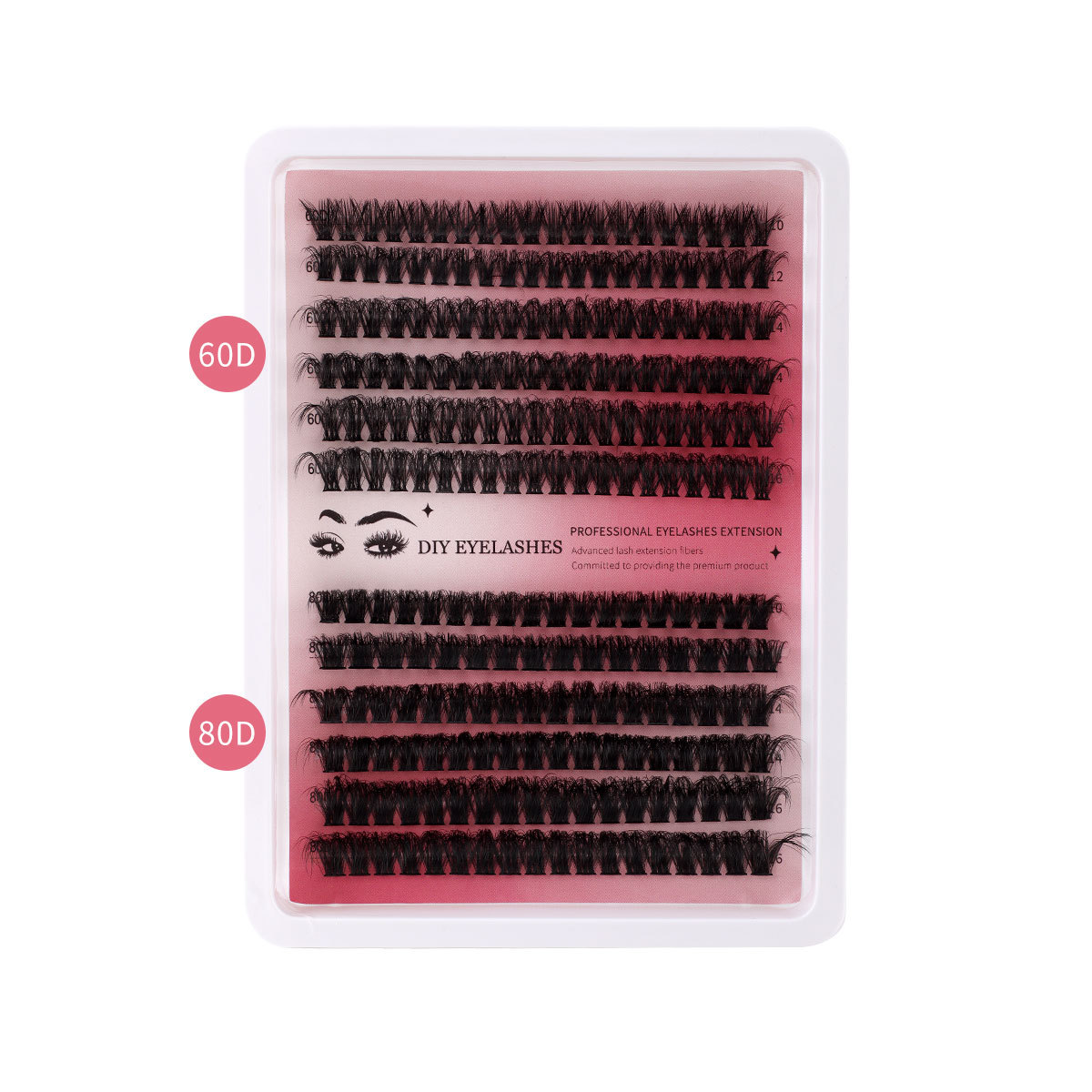 Grænseoverskridende nyt 60D100D tykt enkelt klynge falske øjenvipper sæt 10 16mm krøllede gør-det-selv segmenterede øjenvipper