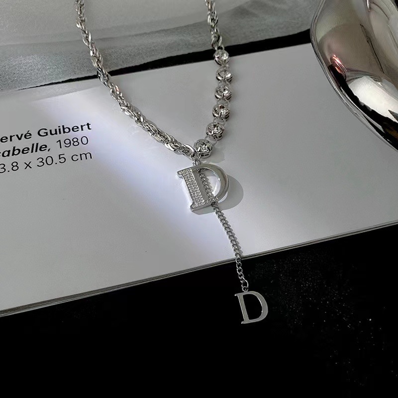 Titanium Steel Colorless Zircon Letter D Decorative Necklace with Light Luxury Women's Instagram Cool Style 2023 High