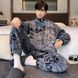 Men's sleepwear with thickened coral fleece and warm long sleeves for winter, suitable for outdoor wear in autumn and winter, men's home suit set