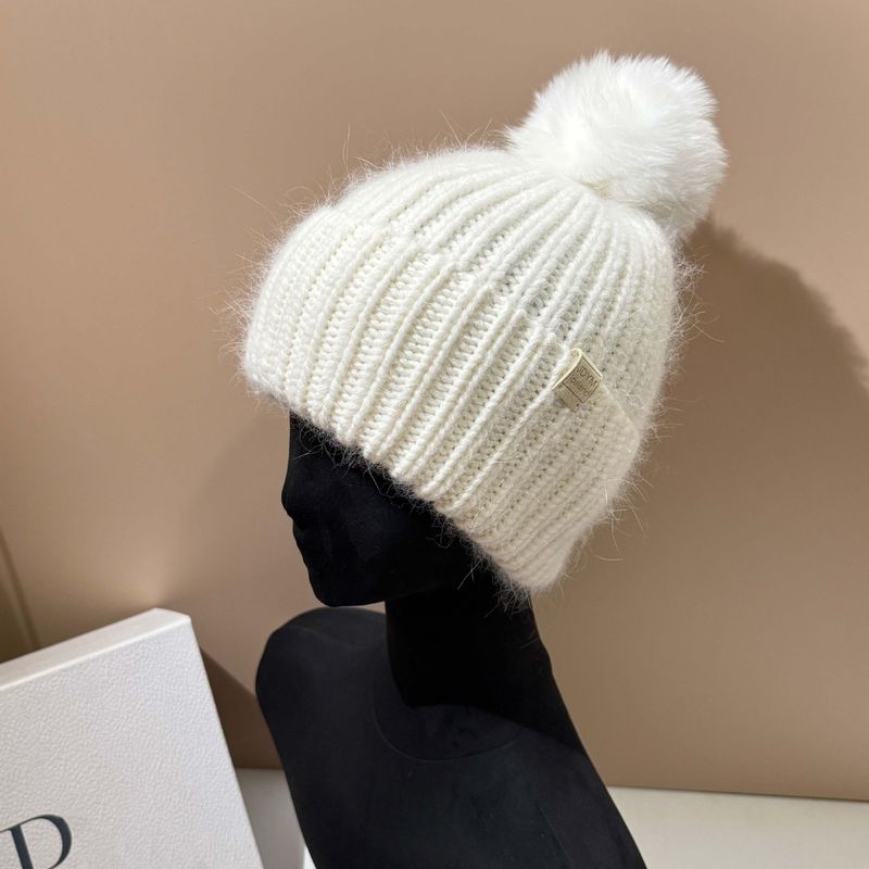 high Quality Fox Ball Rabbit Hair Knitted 2025 Winter New Warm With Yarn Women's Hat