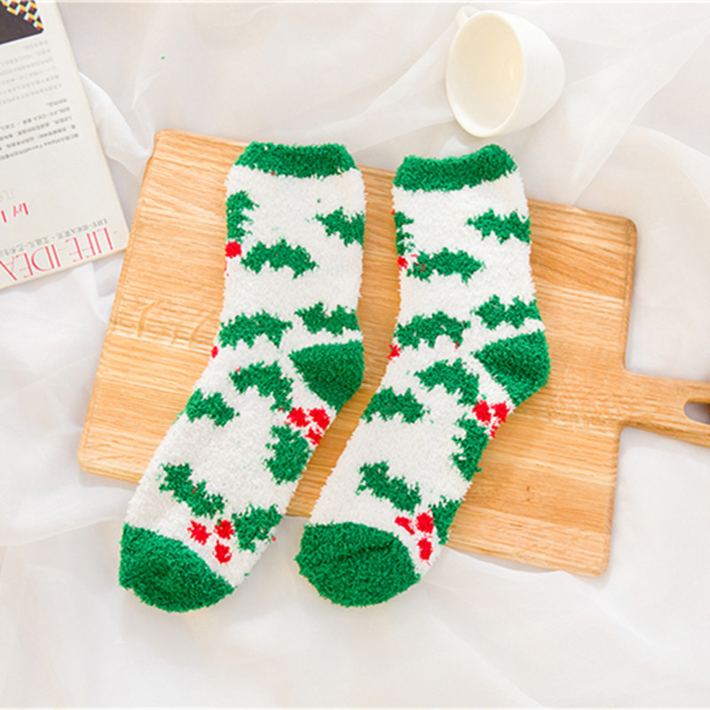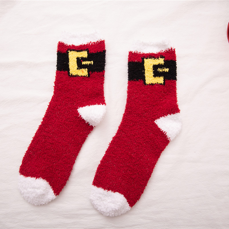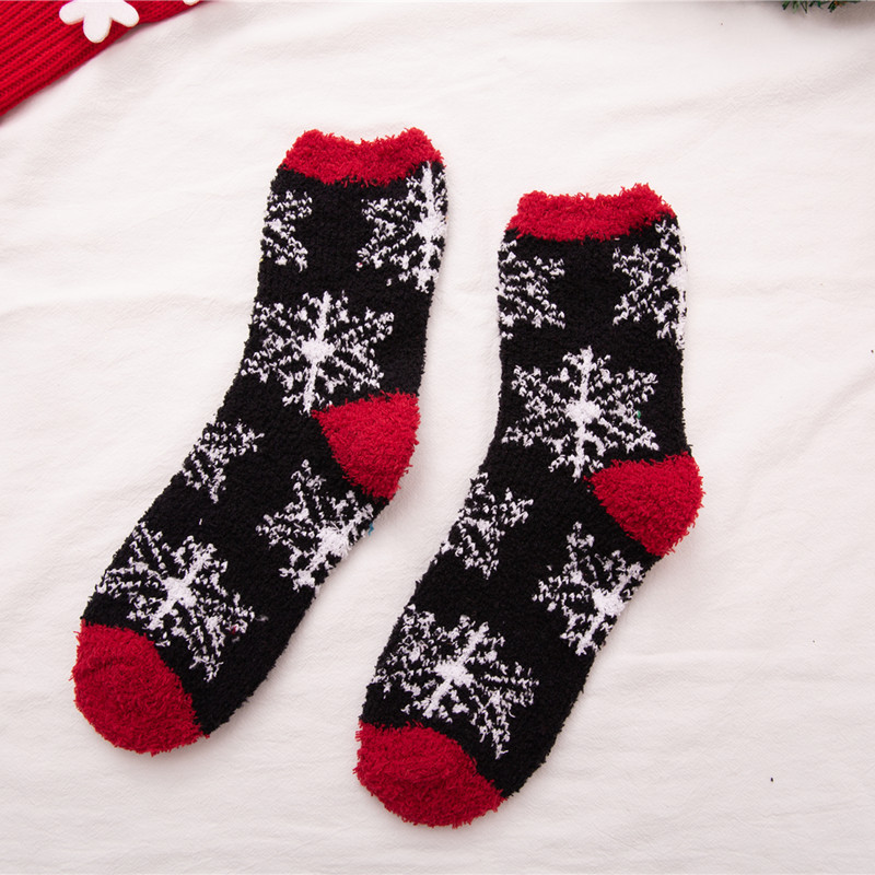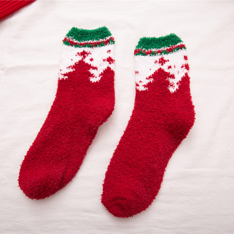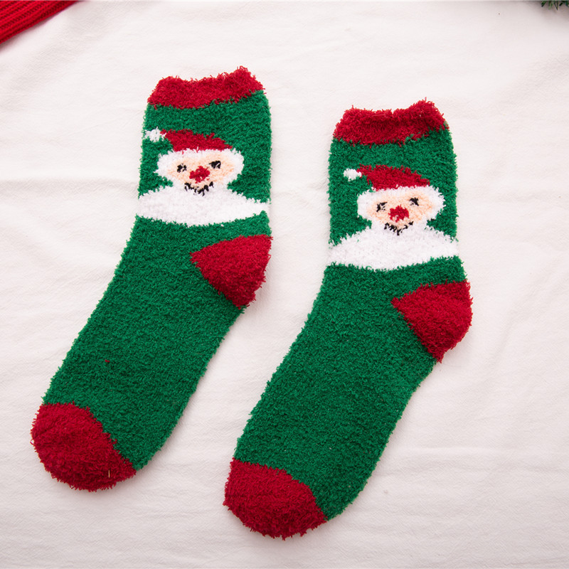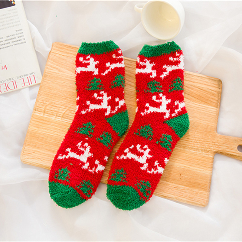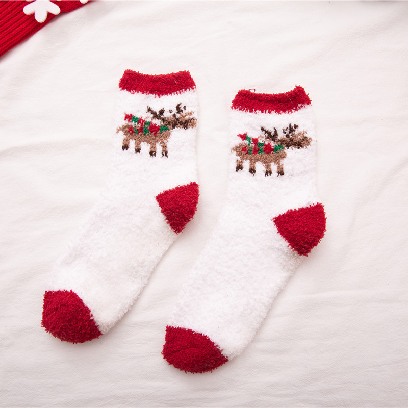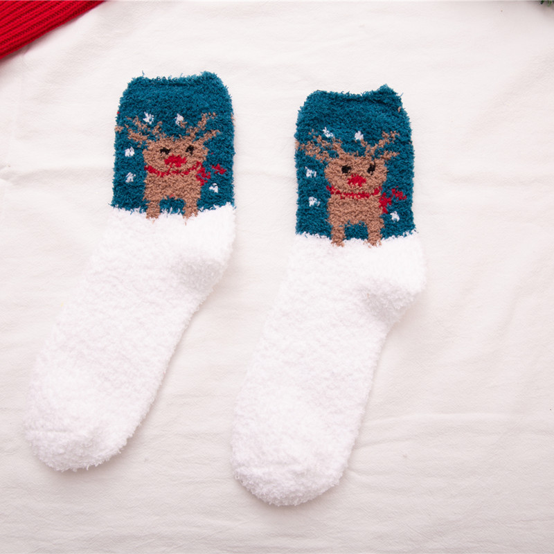 Autumn and Winter Elk Elderly Warm Half Velvet Adult Christmas Socks Women Thick Towels Coral Velvet Socks