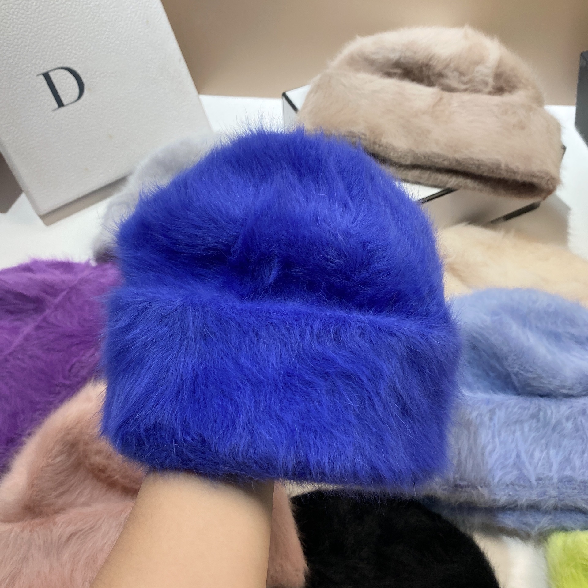 Korean plush two wearing headband hat for warmth in autumn and winter, Angora rabbit hair pile hat, fashionable and simple light edition knitted hat
