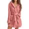 Kvinders fløjlspyjamas ensfarvet varm hjemmebadekåbe med hætte