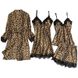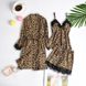 Kvinders nattøj Silkesort Leopardprint Hjemmetøj Pyjamassæt Mode blondepyjamassæt