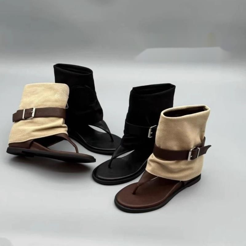 Lancui Roman Style Toe Post Casual Sandals Slip-On Boots 2025 Summer New Hidden Heel Tube Boots