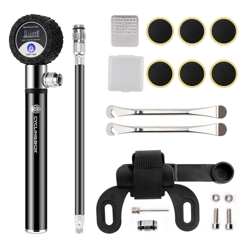 LCD digital tire repair kit portable manual mountain bike aluminum alloy pump riding equipment