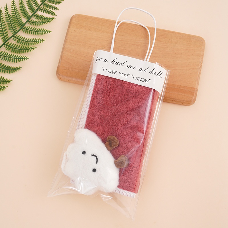 Material:Coral fleece,Item Number:Hanging Hand Towel,Custom Processing:yes,Gram weight:50g included - 80g excluded,Brand:Youhe,Yarn Gauge:other,Craftsmanship:Embroidery,Color:Blue - Ice Cream, Blue - Ice Cream Bag, Red - Cloud, Red - Cloud Bag, Gray - Little Elephant, Gray - Little Elephant Bag, Yellow - Little Chick, Yellow - Little Chick Bag, Pink - Watermelon, Pink - Watermelon Bag,Specifications Length*Width cm:35*35cm,Towels and Washcloths Subdivision:Hand towel