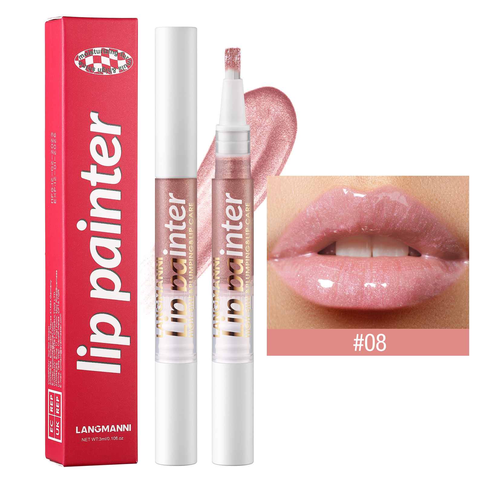 Lip Gloss Rotating Lip Gloss Pearlescent Easy To Color Soft Brush Glitter Lip Gloss