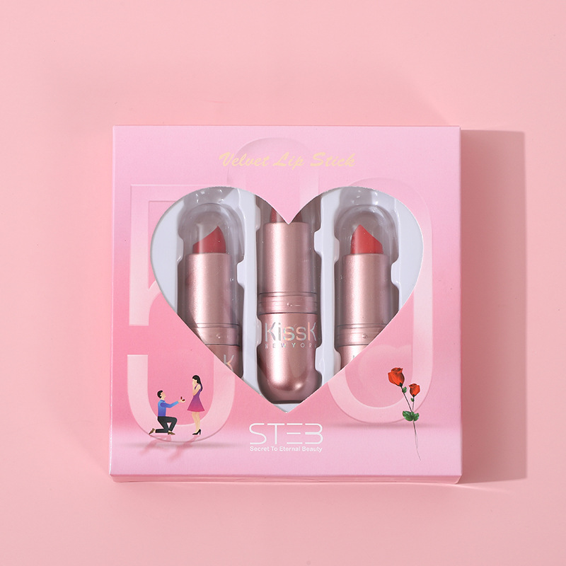 Lipstick set, giving, three pieces, color fast, non staining cup, lipstick, bright color, moisturizing lipstick gift box