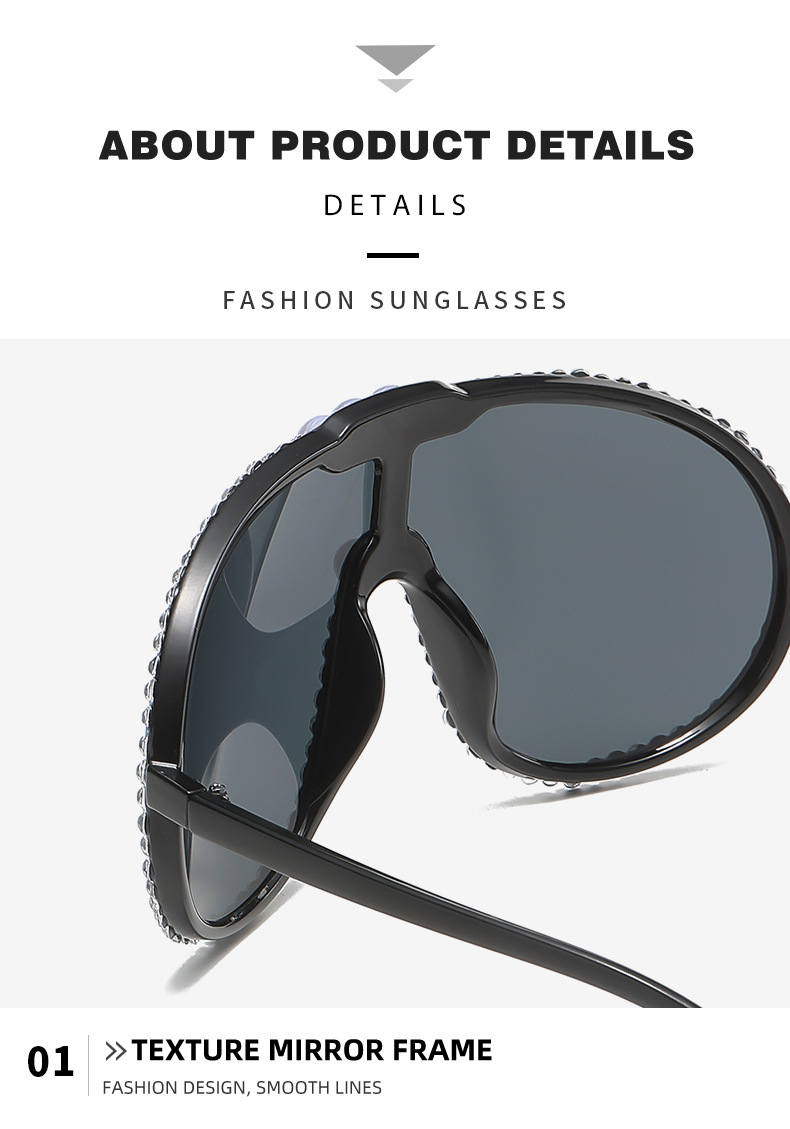 2023 nyt stort stel integreret tudsespejl personlig diamantindstøbning Luksus One Piece Fashion Pilot-solbriller