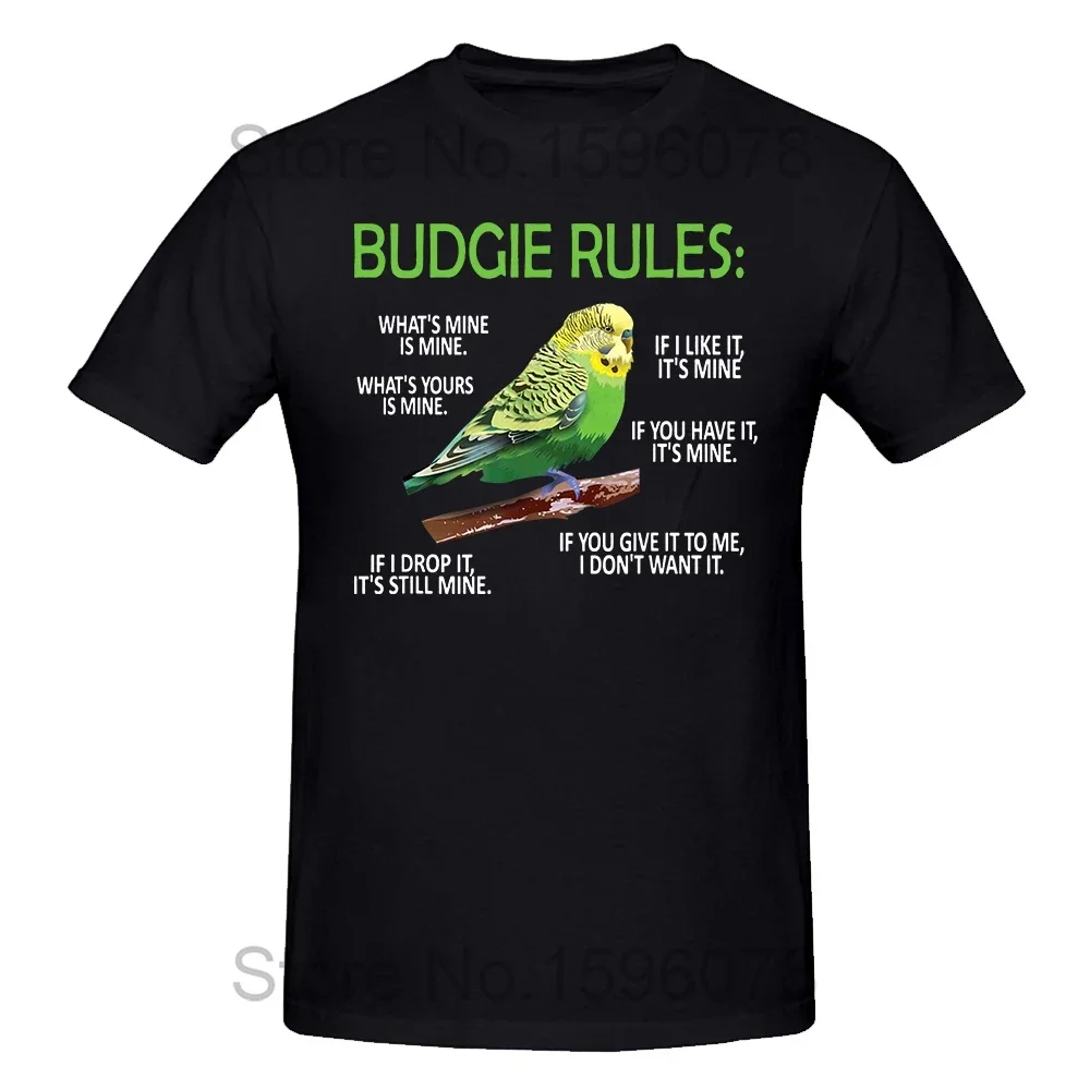 Funny Budgie Rules Parakeet Bird Budgerigar T Shirts Streetwear Short Sleeve Birthday Gifts Summer Style T-shirt Mens