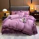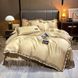 Luksus sengeskørtsæt - 4 stk. sengetøj i vasket silke- og tencelblanding med issilke og blondekant