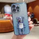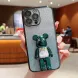 Luxury Plating Candy Bear Holder Case For Iphone 16 15 Pro Max 16 Plus Camera Lens Protect Gradient Glitter Silicone Phone Cover