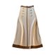 "Luksus damelys beige og cremefarvet elegant modesæt - broderet bluse med metalliske knapper + midi-nederdel i A-linje