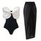 Women's Black & White Tube Top One-Piece Swimsuit With Bow - Stylish Bathing Suit For Women