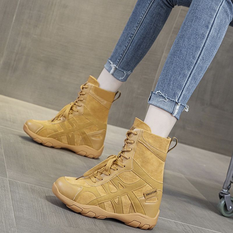 Martin Boots Women's British Style 2025 Autumn And Winter New Maillard Short Boots 9cm Invisible Inner Height Increasing Big Yellow Boots