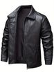 Men's PU Leather Motorcycle Jacket - Full-Zip Lapel Collar Softshell Coat, Loose Fit Casual & Riding Jacket with Zippered Pockets, Golden-Tone Hardware, Full-Length Zipper No-Stretch PU for Daily Wear & Motorcycle Enthusiasts