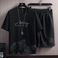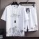 Men's Slim Fit Large Size Sports Two-Piece Set Short-Sleeved T-Shirt Suit Snow Mountain Print