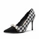 Kvinders nye stiletto populære franske houndstooth højhælede farvematchende alsidige perlesko til kvinder i efterår og vinter